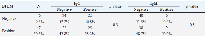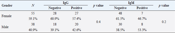 Table 2. Correlation between age groups and IgG and IgM positivity.
