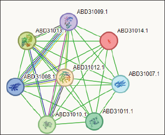 Fig. 3. The network of interactions of Staphylococcus gallenarum (OR150692) bioactive molecules (Gallidermin, ABD31014.1) with Staphylococcus aureus as predicted by STRING. DiscussionNatural products are now the target for alternative sources of antimicrobial agents especially from microorganisms obtained from soil (Newman and Cragg, 2016). Although, reports have revealed that this could also be isolated from insect-based sources (Oh et al., 2011; Poulsen et al., 2011; Chevrette et al., 2019). In our recent study, we examined a diverse range of bacterial strains isolated from insect-based sources capable of producing secondary metabolites with activity against bacterial pathogens. The results revealed that many insect-based bacteria capable of producing small molecules with activity against bacterial pathogens are eminent and therefore, a source of novel antimicrobial agents. A recent report found that insect-based microbes (Streptomyces) exhibit higher inhibitory activity against fungi, Gram-negative bacteria, and Gram-positive bacteria, compared to both soil and plant-associated strains (Chevrette et al., 2019). The implication is that novel antimicrobials with untapped potentials could be sourced from insect microbes. Poulsen et al. (2011) reported 11 distinct and structurally diverse secondary metabolites from insect-associated Streptomyces with activity against bacteria and fungi. This study although, related in design, but differed in the diversity of organisms and the bioactive compound obtained. There are several reasons for this variation; the research interest of the Authors, the isolation protocol adopted, the composition of the isolation media, probably the differences in geographical location, and other unidentified variables. Furthermore, variations in temperature, humidity, soil composition, and vegetation between different locations can lead to distinct microbial populations and subsequently different bioactive compounds. Likewise, host specificity and species variation among the wasps examined in the studies contribute to the differences observed. Each wasp species harbors a unique microbiome influenced by factors such as diet, nesting behavior, and symbiotic relationships (Receveur et al., 2020). Consequently, the diversity of antibiotic-producing bacteria associated with each species varies, resulting in differences in the bioactive compounds they produce. These findings are significant as they unveil the complexity of microbial communities linked with wasps and highlight the antimicrobial potential of the secondary metabolites against diverse pathogens. Elucidating the underlying mechanisms of metabolite production could further enhance their utility and production in the future. In the present study, the analysis of protein-protein interactions via STRING indicated that gallidermin has a strong positive interaction with S. aureus, suggesting its promise as an effective antibacterial agent. This study corroborates the study conducted by Newstead et al. (2020) who emphasized gallidermin’s ability to inhibit both Staphylococcus epidermidis and S. aureus, including the MRSA strain known for its resistance. Similarly, this work affirmed the conclusions drawn by Bengtsson et al. (2018), in the efficacy of the lantibiotic gallidermin in eradicating S. epidermidis and S. aureus while also mitigating the proinflammatory reactions induced by these bacteria in dermal fibroblasts. Gallidermin’s ability to alleviate inflammatory responses triggered by bacteria in dermal fibroblasts has been reported. Overall, these findings suggest that gallidermin could serve as a potent antimicrobial agent, particularly in combating infections caused by S. aureus, S. epidermidis, and other arrays of pathogenic bacteria. The phenazine secreted by P. fragi showed a favorable interaction with Escherichia coli. However, no other bioactive compounds displayed such interactions with the test strains in our study. This could be largely due to limited information within the STRING database with regard to specific interactions with other microorganisms. In this study, the notable inhibitory effect of phenazine, produced by P. fragi, was prominently observed and is consistent with the report of Lim et al. (2017), who emphasized the substantial antimicrobial capabilities of this compound. Apart from the biotechnological perspective, phenazine compounds have the notable potential to inhibit plant-pathogenic fungi and thus are useful in controlling plant diseases (Bilal et al ., 2017; Lauková et al., 2018). Likewise, enterocins are polypeptides with bacteriostatic activity against important foodborne pathogens, such as S. aureus, Listeria monocytogenes, and Salmonella enterica, and purified enterocin E-760 has been proven to inhibit the growth of 24 species of Gram-negative bacteria and 3 species of Gram-positive bacteria. (Wu et al., 2022). A study reported that the administration of Enterocin M led to the reduction of coliforms and Campylobacter and Clostridium spp (Lauková et al., 2018). The clinical applications of biocin and propionicin (bacterocins) have also been reported in the literature with the tract record of antimicrobial properties against pathogens (Grilli et al., 2009; Atassi and Servin, 2010; Carroll et al., 2010; Campion et al., 2013; Lebel et al., 2013). These findings revealed the inherent treasures that could be harnessed from microbes from diverse sources, particularly the untapped insect-associated sources. ConclusionThe study concluded that wasp-associated bacteria have antimicrobial activity against different pathogenic bacteria. This discovery underscores the potential of exploring additional antimicrobial agents from other insect sources to address the global challenge of drug-resistant pathogens. Given the widespread prevalence of antimicrobial drug resistance, there is an urgent need to expand our investigation into unconventional antimicrobial sources, as they may hold th