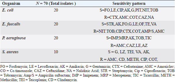 Fig. 8. Distribution of virulence genes among uropathogens. Table 4. Antibiotic sensitivity pattern of UTI Isolates.