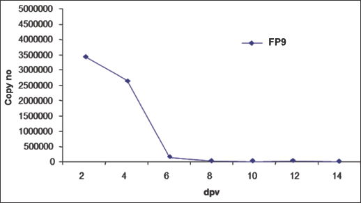 Fig. 3. Copy number of the viral vaccine (FP9) in the skin following vaccination, using real-time quantitative PCR.